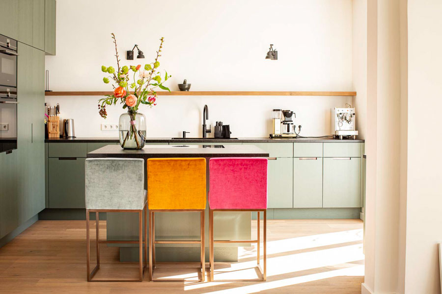 Ein gemütlicher Barhocker, der durch seine schlichte Eleganz überzeugt. Er unterscheidet sich durch eine höhere Rückenlehne und ein schmaleres Gestell von unserem Barhocker Eliot. Dank der guten Polsterung sitzt man auf ihm äußerst komfortabel.